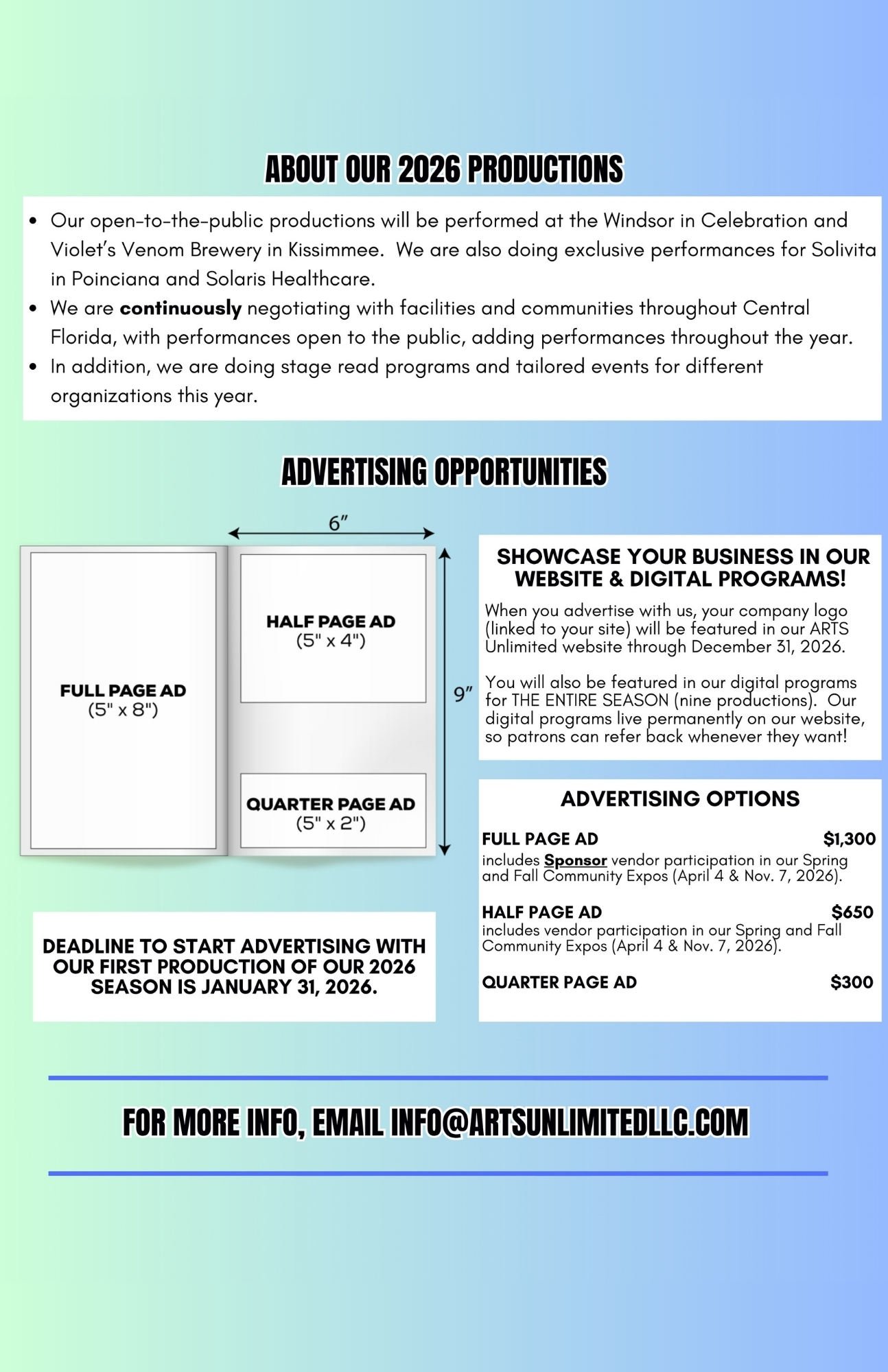- info@artsunlimitedllc.com
